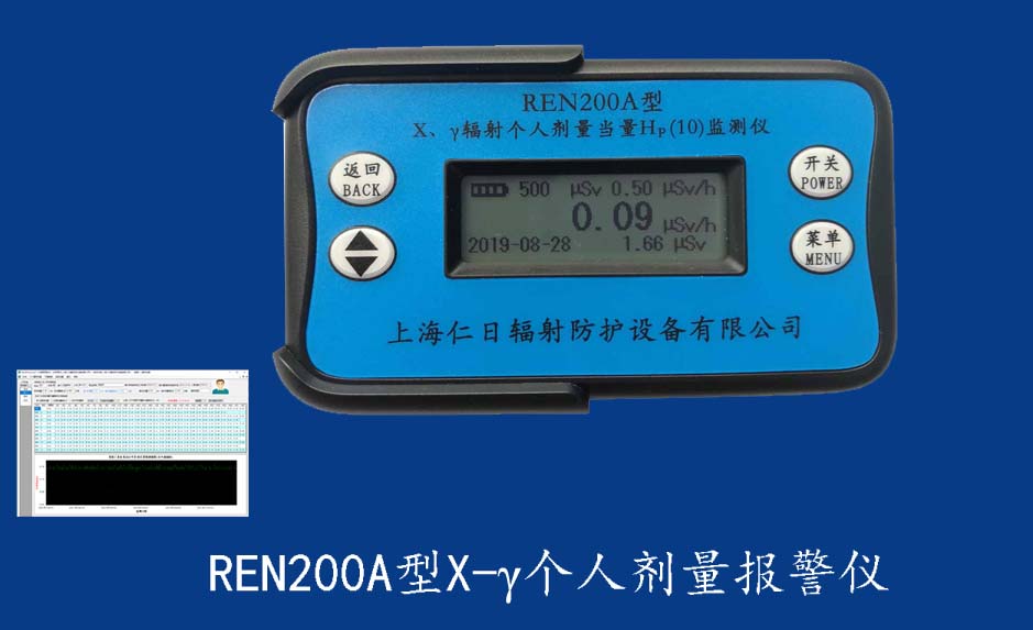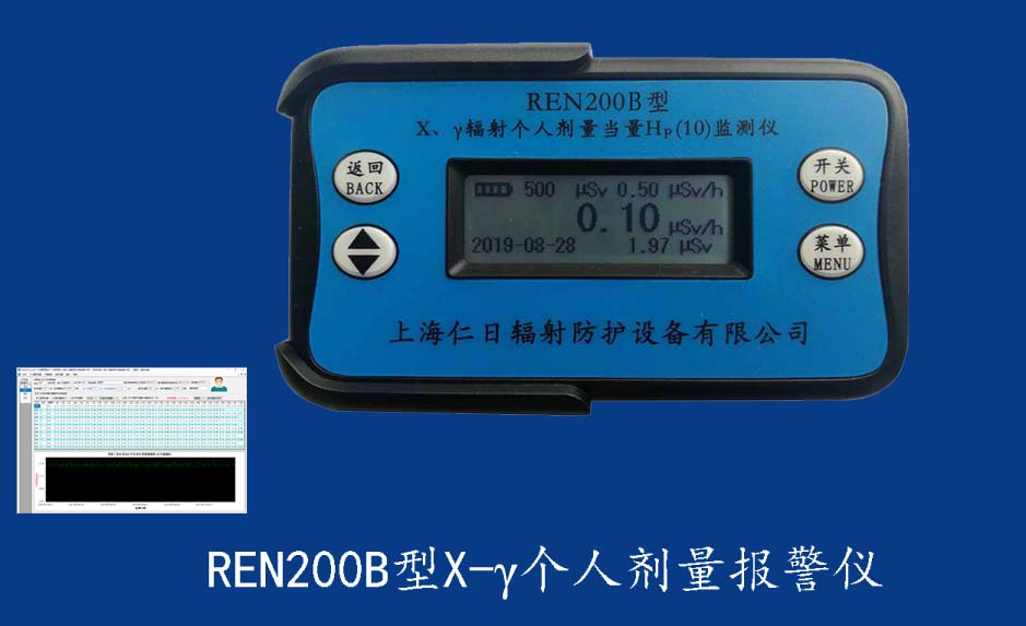 REN200 個人輻射監測儀 REN200型X、γ個人劑量報警儀(又叫X、γ輻射個人劑量當量HP(10)監測儀)內置高靈敏度蓋格計數管為探測器,主要用來監測各種放射性工作場所的X、γ以及硬β射線的輻射,具有響應快,測量范圍寬的特點。能顯示工作場所的劑量當量率和累積劑量,更換電池時,日期及累積數據能永久保存?蛇x配RenRiPersonal個人劑量管理軟件,該軟件可存儲多個人的歷史數據,能記錄日累積、月累積、年累積、輻照時長、計算平均劑量率、扣除或不扣除本底輻射,且以文字和圖譜的方式展現數據。廣泛應用于核電站、加速器、鋼鐵、化工、同位素應用、醫院、工業X、γ無損探傷、放射醫療、鈷源治療、γ輻照、放射性實驗室、核設施周圍環境監測
